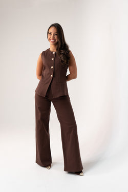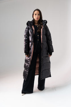 Love Laura Longline Faux Fur Coat In Chocolate