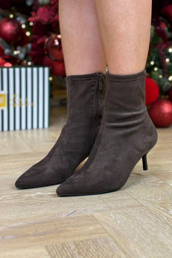 The Cathy Faux Suede Ankle Boot delivers understated elegance with its pointed toe silhouette and modest heel. Crafted from soft faux suede in a versatile neutral tone, this boot transitions effortlessly from day to evening wear. The refined small heel provides subtle lift whilst maintaining comfort for extended wear. Perfect for layering with dresses, skirts, or tailored trousers, these boots offer a polished foundation for any wardrobe.