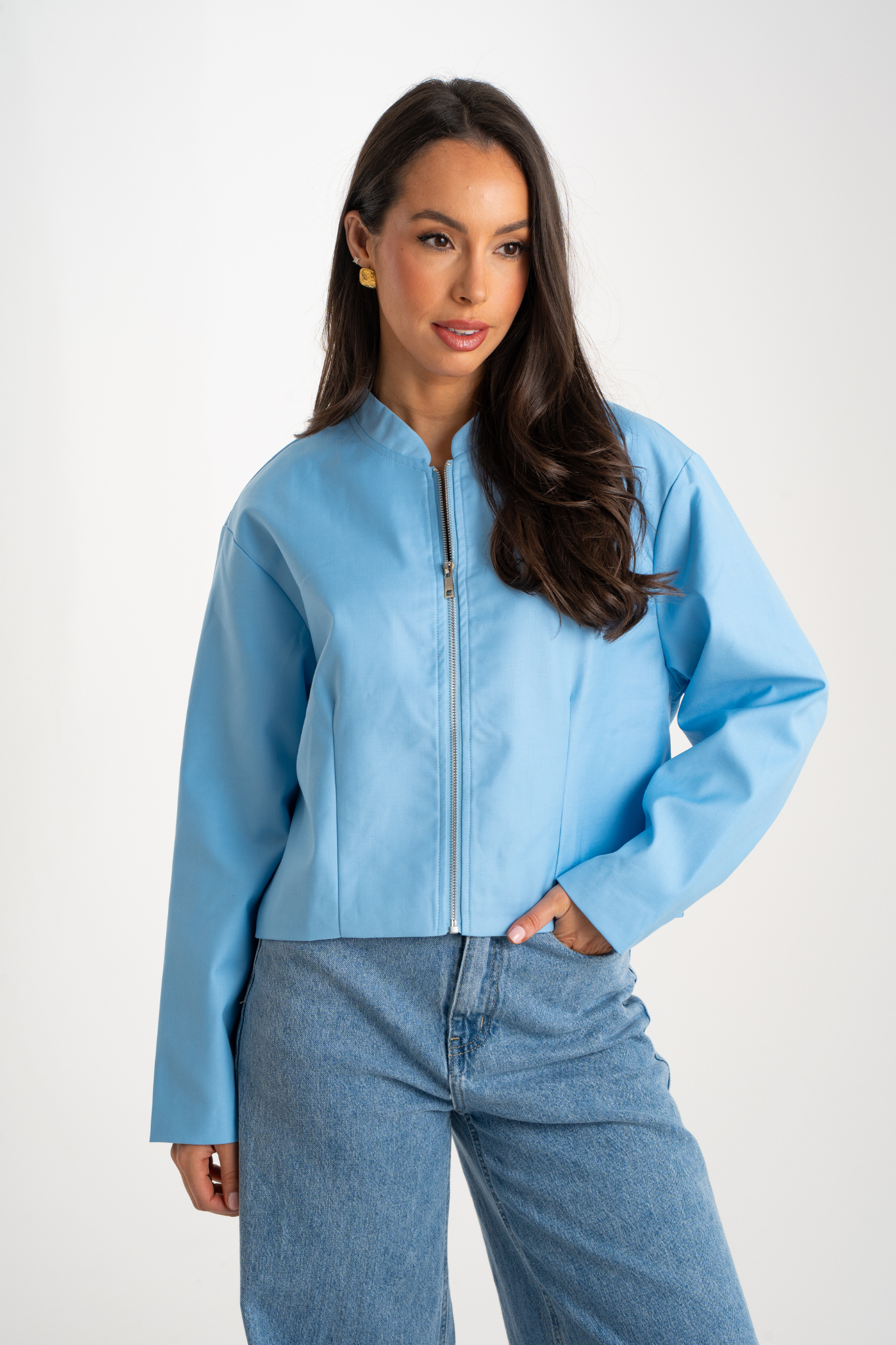 Daisy Zip Jacket In Sky Blue