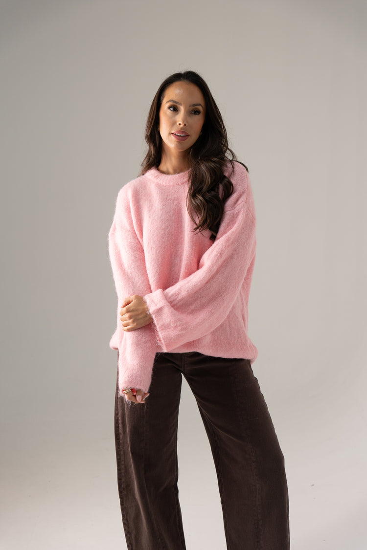 Elsa Round Neck Jumper In Pink