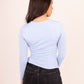 Introducing the Erica Long Sleeve Top in Sky Blue. This versatile top features a round neck, long sleeves, and stretch material ideal for layering. With a beautiful sky blue colour, this top is a must-have for any wardrobe. Stay stylish and comfortable with the Erica Long Sleeve Top.