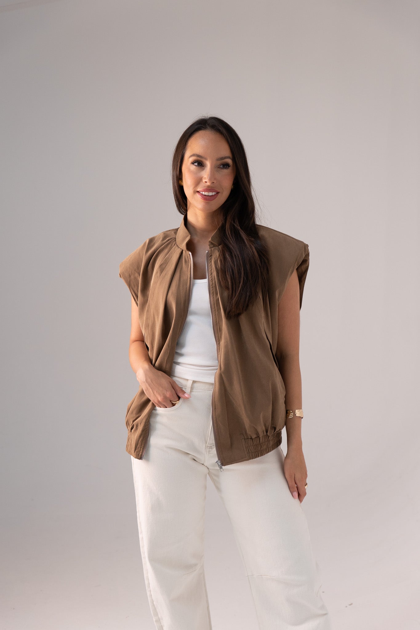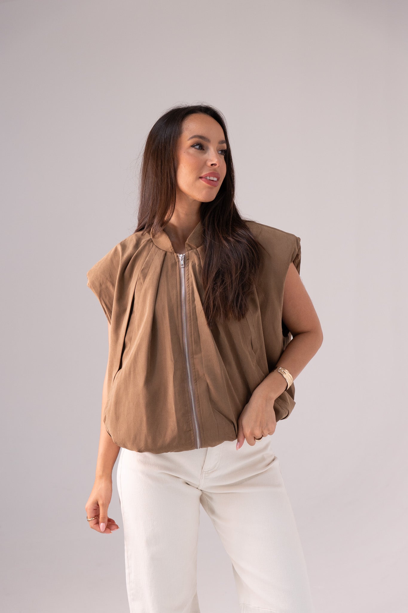 Iris Sleeveless Zip Jacket In Brown