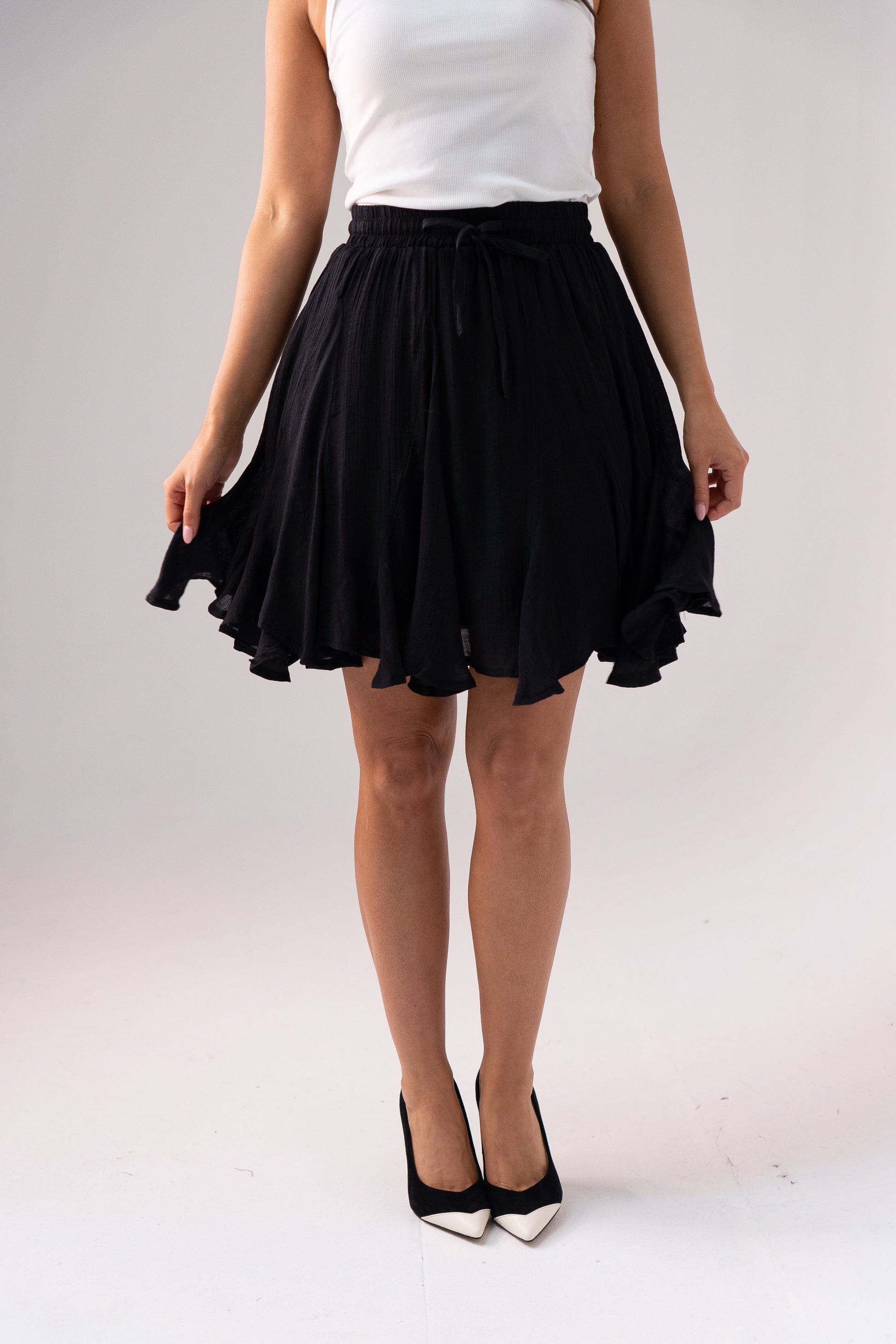 The Kendra Pleated Skirt in Black features a comfortable elasticated drawstring waist for a perfect fit and ease of wear. Its neatly pleated design adds texture and movement, while the short length offers a modern, versatile silhouette. Fully lined for smooth wear, this skirt combines style and practicality, making it an essential piece for your wardrobe.