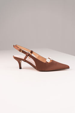 The Love Laura Pearl Detail Kitten Heel in Burgundy features a sleek PU upper in a rich hue, enhanced by a delicate pearl detail at the front. Its pointed toe and slingback design are complemented by a gold buckle strap for a secure and stylish fit. The Love Laura branded insole offers comfort, while the gold 'xo' on the sole adds a distinctive signature. Available in UK sizes 3-8, this heel delivers refined elegance with a contemporary edge.