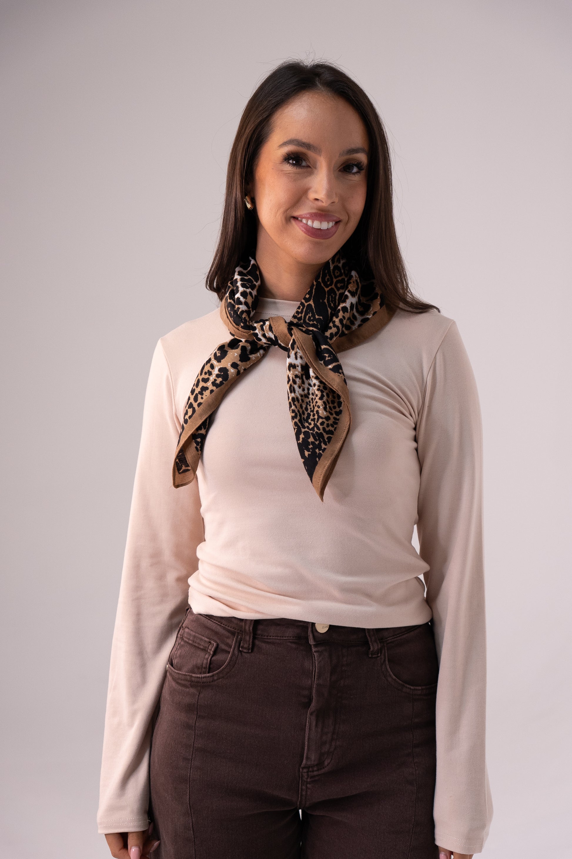 Elevate your outfit with the Polly Leopard Print Neck Scarf, featuring a striking square design and sophisticated camel trim. Lightweight and easy to style, this one-size accessory adds a refined touch of bold animal print while remaining comfortable throughout the day. Perfect for layering or accentuating your look with expert flair.
