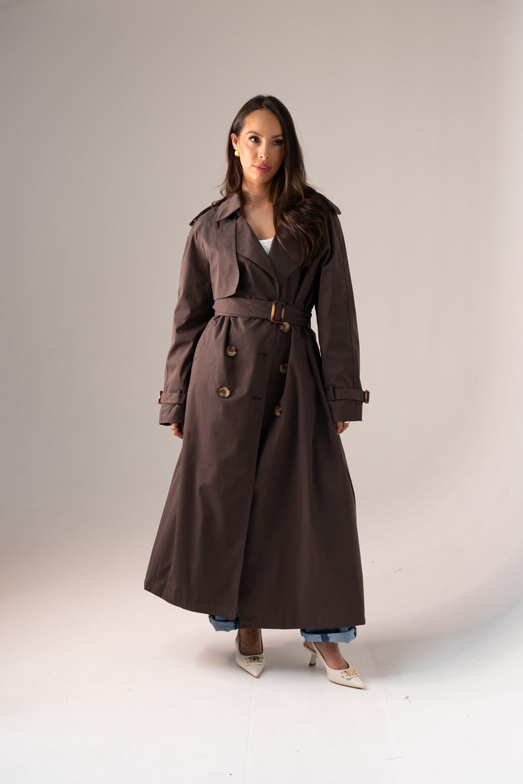 Willow Longline Trench Coat In Coffee