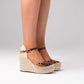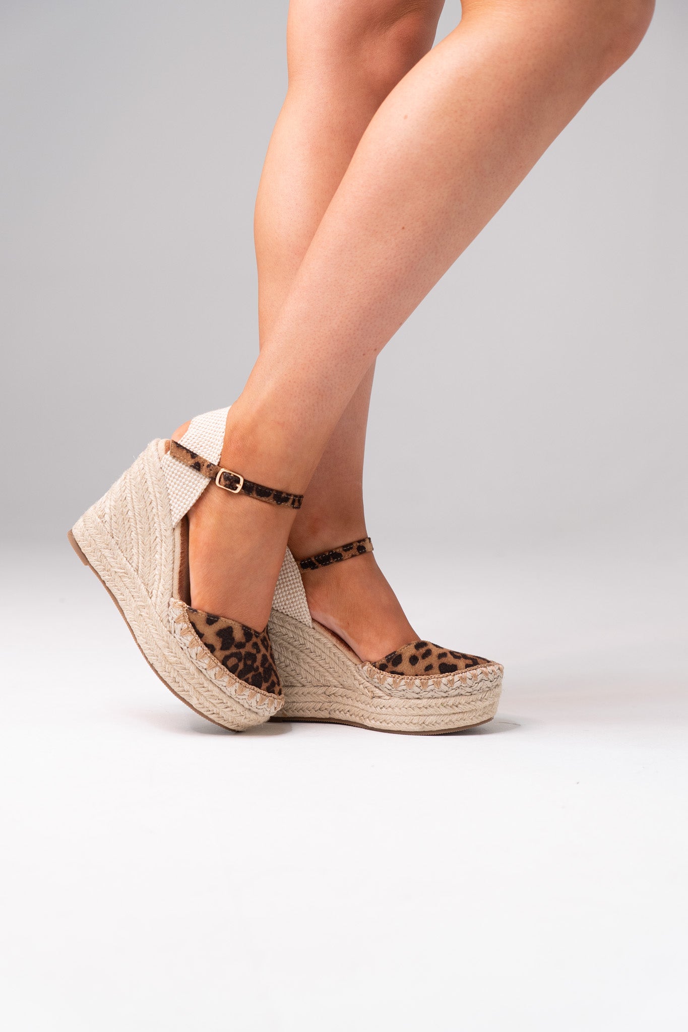 Elevate your style with these sophisticated Cathy Closed Toe Wedges in striking leopard print. Featuring a secure buckle strap and comfortable round toe design, these wedges combine fashion with function. The espadrille-style heel provides stable height while the synthetic construction ensures durability. Perfect for adding a touch of wild elegance to any outfit.