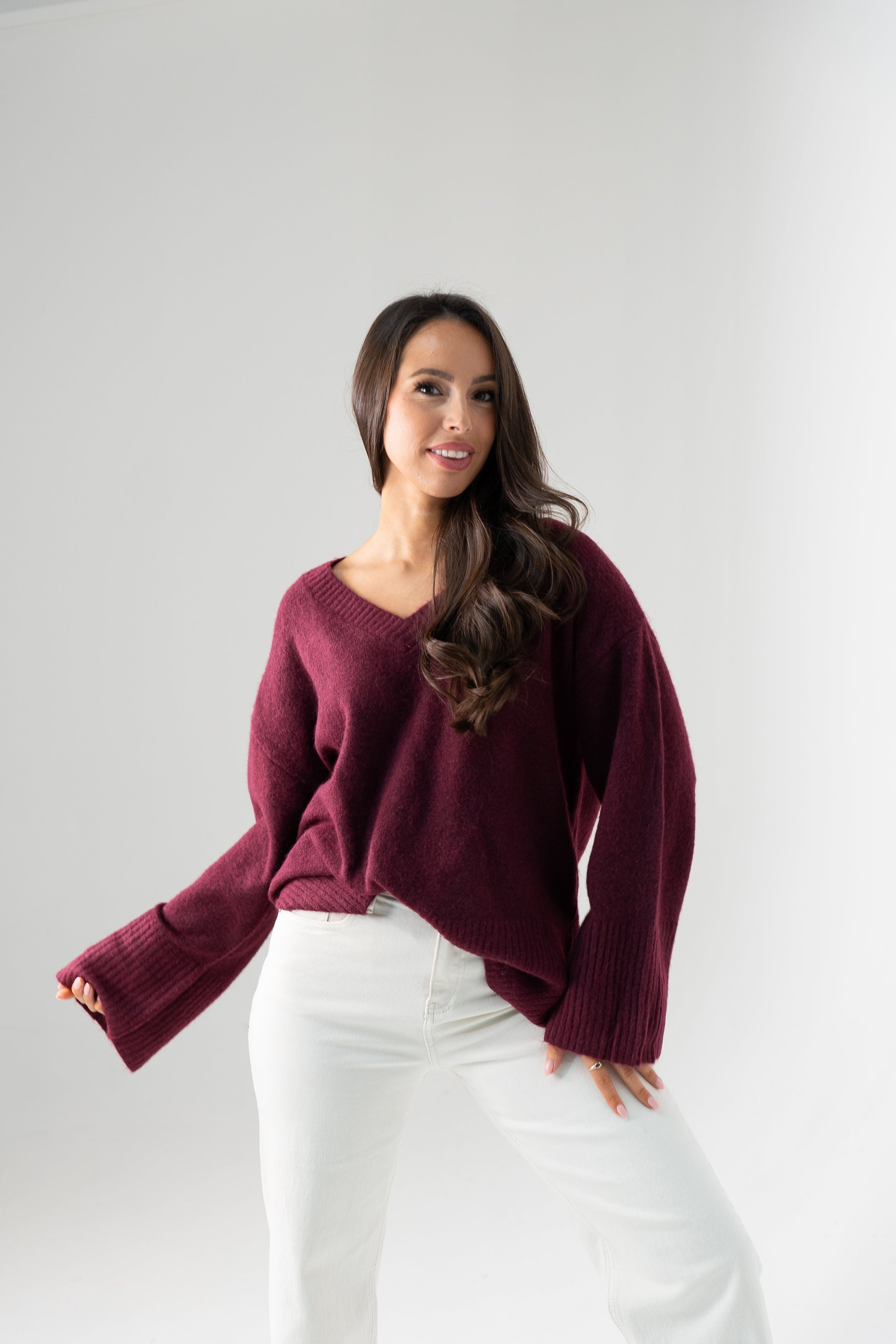 Elevate your everyday wardrobe with this versatile Ella V-Neck Jumper in rich bordeaux. Designed for a relaxed fit with drop shoulders and flattering side splits, it offers both comfort and contemporary style. The ribbed hem and cuffs provide a refined finish, while the long sleeves ensure year-round wearability. Sized 8-14, this piece transitions effortlessly from casual weekends to polished office settings.