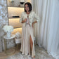 Experience comfort and style with the Elsa Maxi Skirt. Made with a broad waistband and subtle sheen, this cream-coloured skirt features a side split for added elegance. Perfect for any occasion, the maxi length adds versatility to your wardrobe.