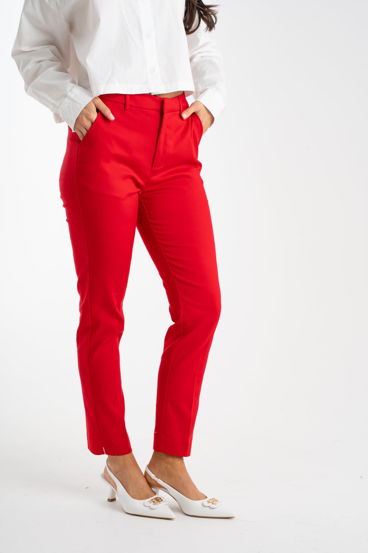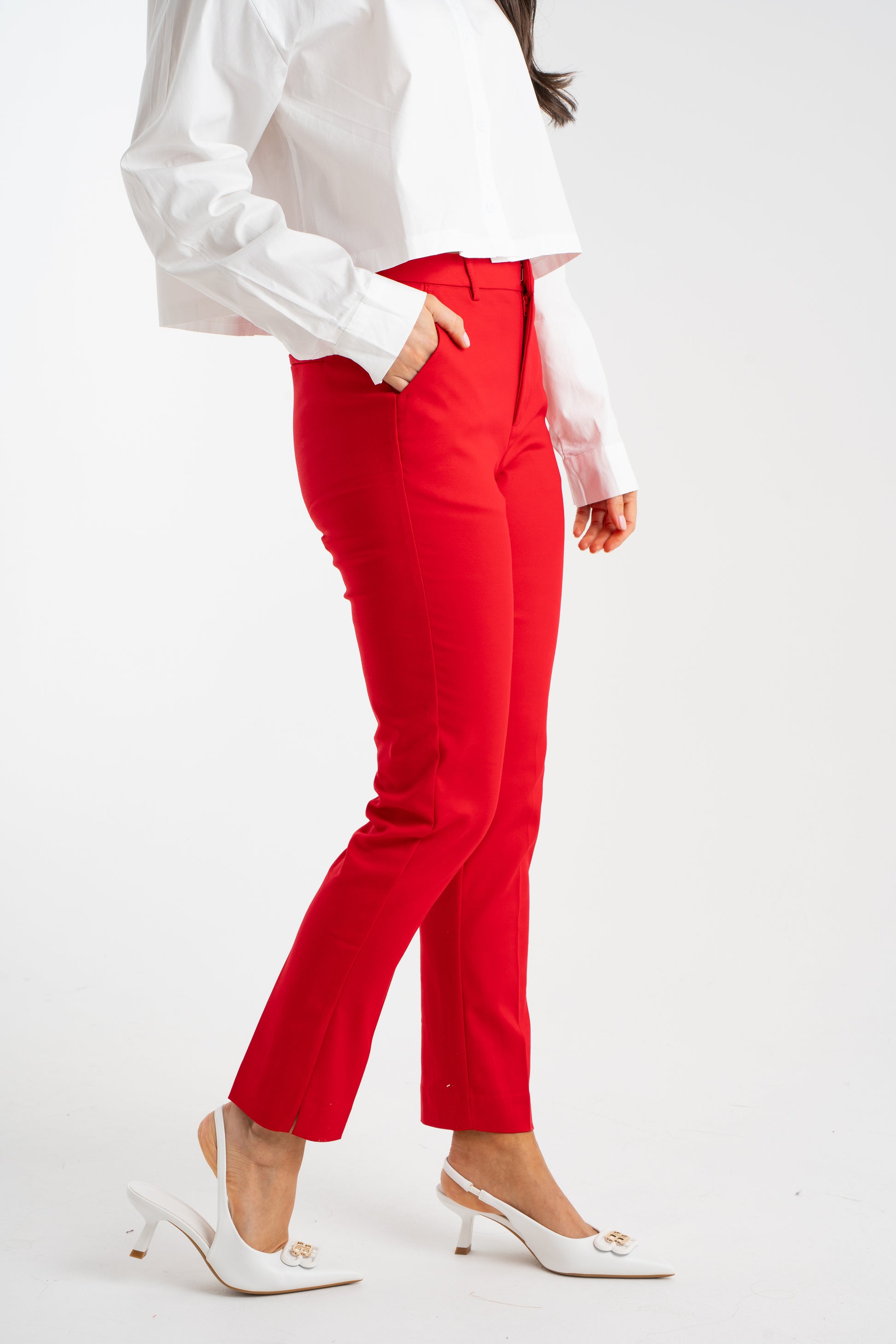 Introducing the Freya Straight Leg Trousers in Red - the perfect combination of style and comfort. Made with a high waist and straight leg design, these trousers offer a flattering fit for any body type. With convenient pockets, a hook and loop fastening, and belt loops, these trousers are both functional and fashionable. Made with a cotton mix, they are comfortable and durable for everyday wear. Elevate your wardrobe with a pop of colour and expertly crafted trousers.