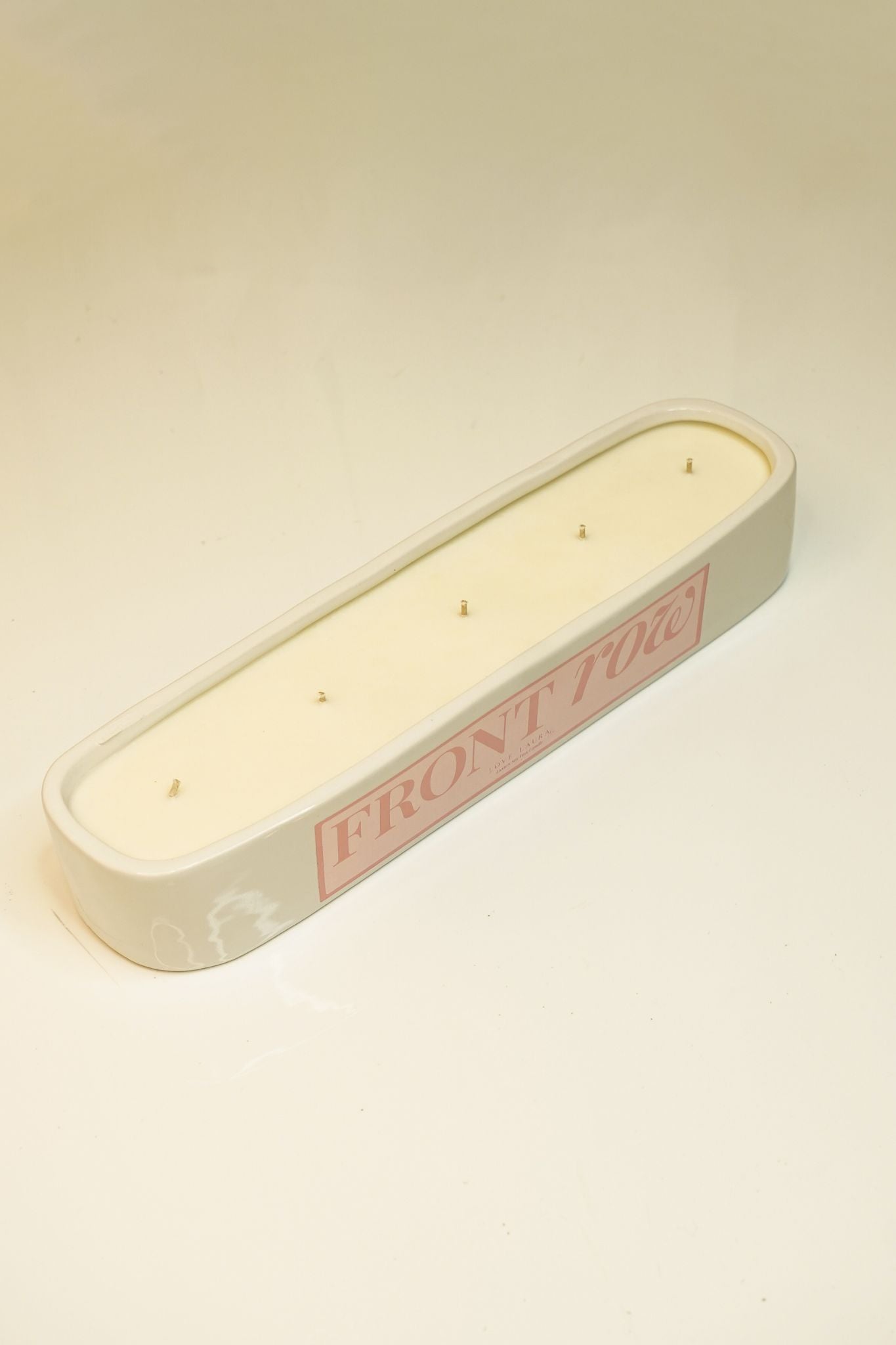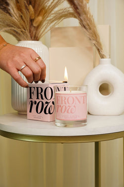 Experience the ultimate luxury with our Front Row With Love Laura Ceramic Candle. This elegant candle comes boxed with a signature sleeve, making it the perfect gift for yourself or a loved one. With 5 wicks and a generous size, it promises an indulgent burn. Enjoy the exclusive Front Row scent and the benefits of luxury soy wax in a beautiful white ceramic container.