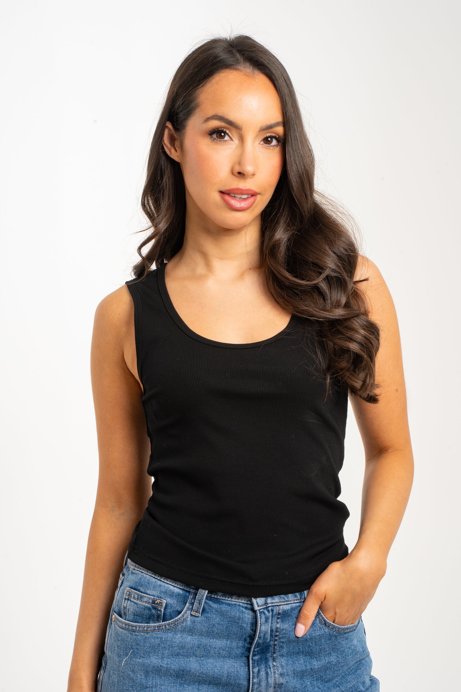 Kate Scoop Neck Vest Top In Black