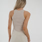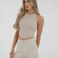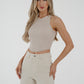 The Kate Vest Top in Stone is a must-have addition to any wardrobe. With its round neck, crop style, and curved hem, this top offers a modern and stylish look. Its neutral stone colour makes it easy to pair with any outfit. Elevate your style with this versatile and flattering top.