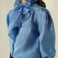 This Kayla blouse features long, puff sleeves and a button front for a stylish and elegant look. The fitted cuffs and pleated shoulder add a touch of sophistication, while the ruffle trim adds a feminine touch. The cornflower blue tone adds a pop of colour to any outfit.