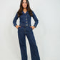 Love Laura Denim Jumpsuit In Dark Wash