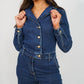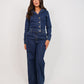 Enhance your style with the Love Laura Denim Jumpsuit. Made with a dark wash denim, this jumpsuit features long sleeves, a wide leg, button front closure, and a stylish collar. Complete with pockets for convenience, this jumpsuit is versatile and available in sizes 6-18. Elevate your wardrobe today with Love Laura.