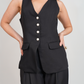 Experience timeless elegance with the Love Laura Forever Waistcoat. Its longer length and V-neck design create a flattering silhouette that's perfect for any occasion, while the pearl detail buttons add a touch of sophistication. The black waistcoat is lined and features faux pockets, giving it both style and comfort. Complete the look with the matching trousers available in sizes 6-18.