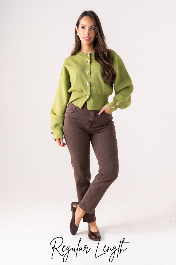 Love Laura Mom Jeans in chocolate denim offer sophisticated versatility with a high-waisted cut and relaxed mom fit designed for all-day comfort. The rich chocolate tone provides a refined alternative to traditional denim washes, pairing seamlessly with both neutral and bold pieces. Featuring a secure zip and button closure, these jeans are available in sizes 6-18 with regular and short length options to suit different frames. The collection also comes in leopard print, mid wash, and black wash finishes for complete styling flexibility. A staple piece that elevates your everyday rotation with understated elegance.