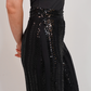 These Love Laura Sequin Trousers in black feature a high waist, wide leg, and broad waistband for a chic and flattering fit. The sequin embellishment adds a touch of sparkle, while the lining and concealed side zip provide comfort and convenience. Elevate your style with these black-on-black sequin trousers.