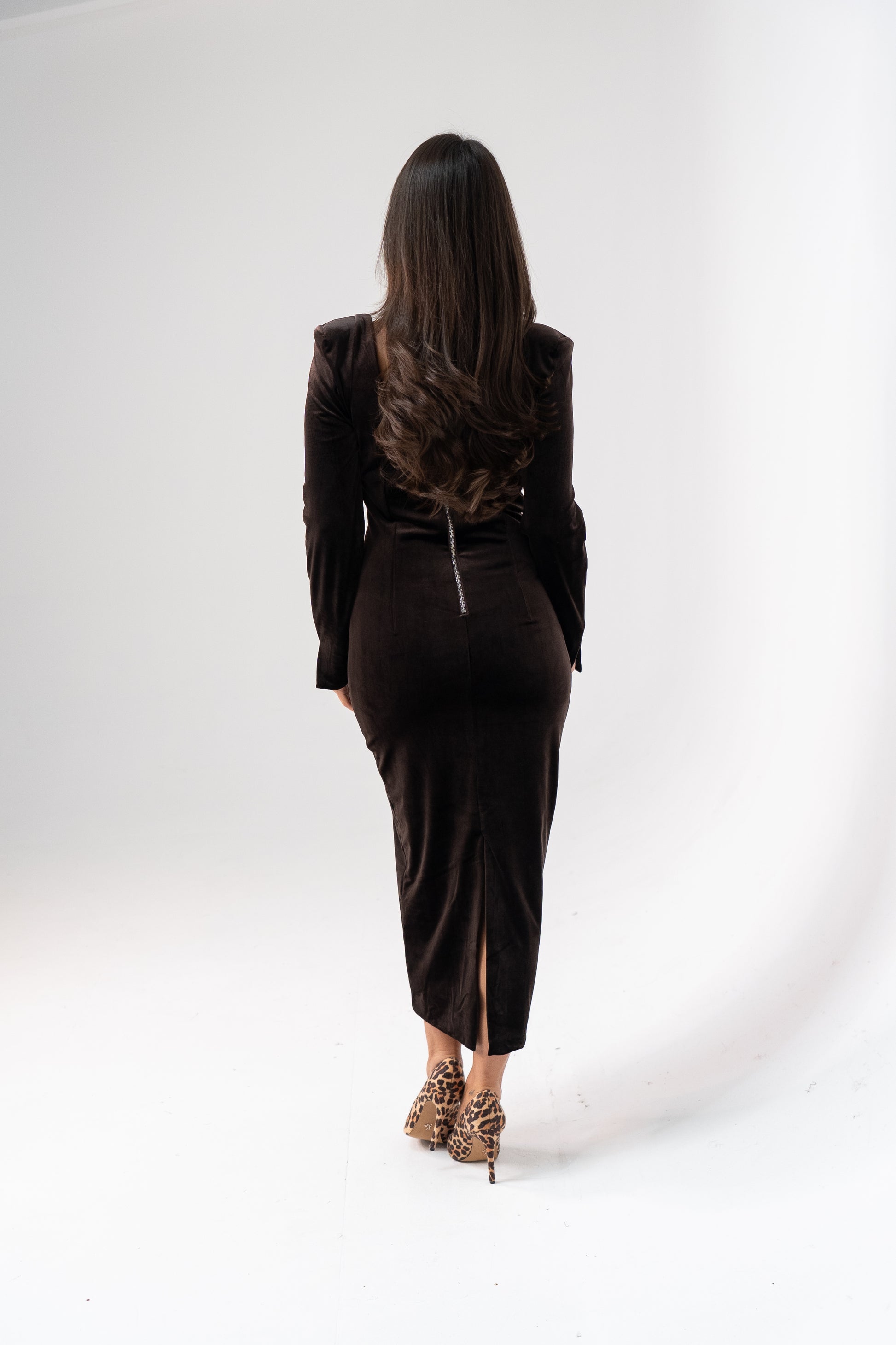 The Love Laura Square Neck Velvet Dress in Chocolate combines timeless elegance with contemporary styling. Crafted in luxurious velvet, this midi dress features a striking square neckline and structured shoulder pads for a polished silhouette. The fully lined construction ensures comfort and opacity, while the concealed back zip provides a seamless finish. Available in sizes 6-18, this versatile piece transitions effortlessly from evening occasions to sophisticated daytime wear.