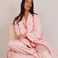 Introducing the Love Laura Trim Robe, a beautiful and luxurious robe in pink with red scallop trim. Add a personal touch with available personalisation on the lapel. With a detachable tie belt and convenient pockets, this robe is the perfect addition to your bedtime routine. Complete the look with matching Love Laura pyjamas.