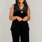 Enhance your style with Love Laura Velvet Two Piece in Black. The luxurious black velvet adds a touch of elegance to this two piece set, featuring a zip waist and lined trousers with pockets for practicality. The longer length waistcoat, adorned with gold buttons (4.5cm diameter), has a shoulder to hem measurement of 70cm. The trousers measure 120cm from the waist to hem, with an inside leg length of 90cm. Plus, a spare button is included for convenience. Elevate your wardrobe with this stylish and sophisticated two piece set from Love Laura.