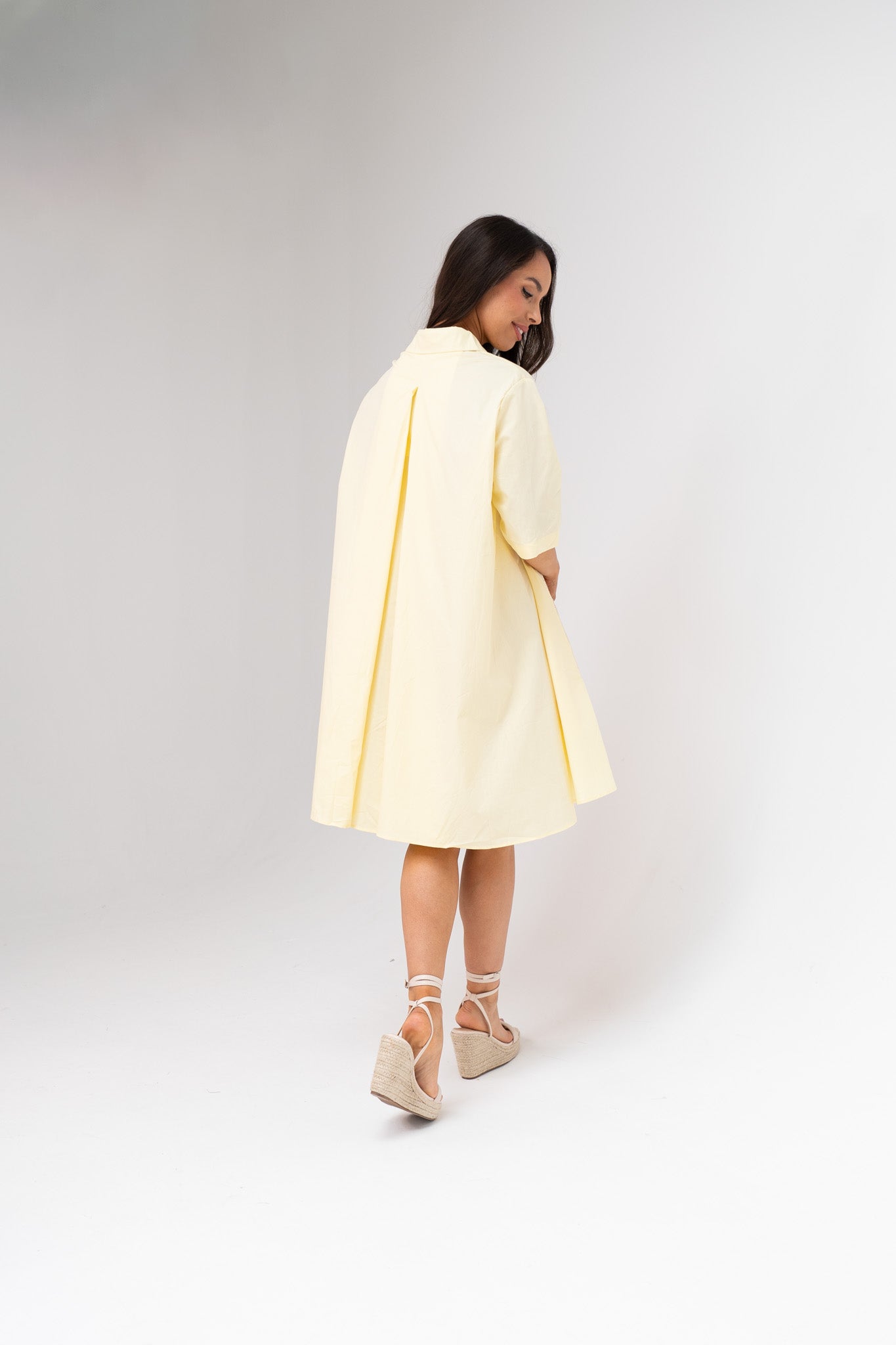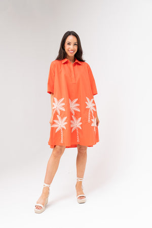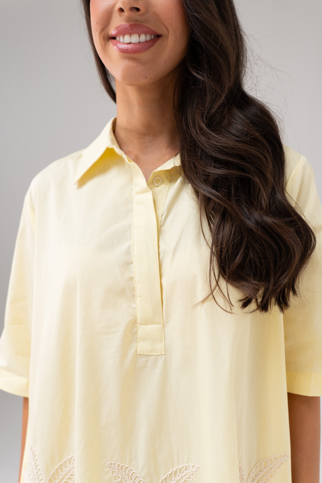 Expertly crafted with short drop shoulder sleeves, a comfortable collar, and a stylish button front, the Millie Embroidered Palm Dress in Yellow features intricate palm tree embroidery and convenient pockets. Stay cool and chic in this must-have dress.
