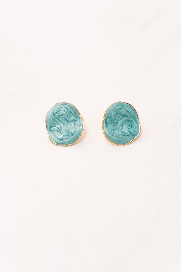 Crafted from durable stainless steel with a luxurious gold finish, these Olive Marbled Earrings feature an elegant oval shape and a unique marbled turquoise stone. Their stud design ensures a secure and comfortable fit, making them a versatile accessory that complements both casual and formal attire. One size fits all, combining timeless style with expert craftsmanship.