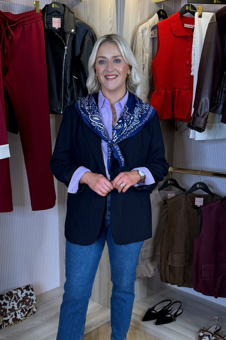 Elevate your accessory collection with this versatile neck scarf, featuring an elegant paisley print in striking royal blue and white. The luxurious satin texture drapes beautifully against the skin, offering a refined finish that transitions seamlessly from day to evening wear. One size fits all, making it an effortless addition to any wardrobe. Style it as a classic neck tie, headscarf, or belt—the possibilities are endless. A sophisticated piece that delivers both versatility and timeless appeal.