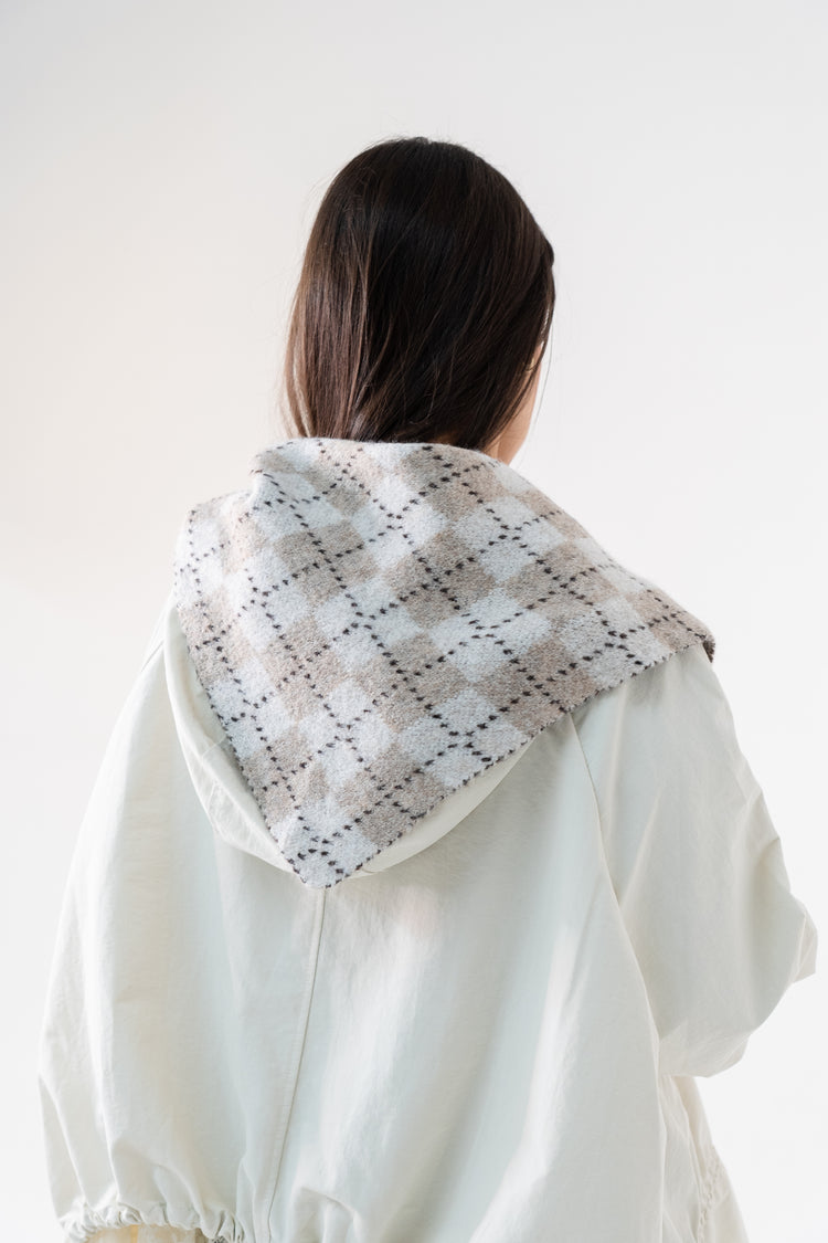 Elevate your layering game with this sophisticated diamond knit scarf. Crafted from quality wool, this scarf features a refined geometric pattern in warm taupe tones that complements any winter wardrobe. The versatile one-size design drapes effortlessly around the neck, offering both style and practical warmth. Perfect for adding texture and depth to casual or smart-casual outfits, this timeless piece transitions seamlessly from day to evening wear.
