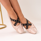 Elevate your style with our Sadie Cross Strap Pumps. Featuring a square toe, bow detail, and contrast crossover straps, these flats are both elegant and comfortable. Fully synthetic, these pumps are the perfect addition to any outfit.